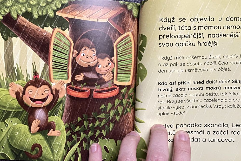 Starší děti si můžou přečíst knihu samy. Obrázky malovala úžasná Terilla a hlavním konzultantem textů byl živoucí Leo, můj prostřední syn, kterému bude sedm. Písmenka jsou velká tak akorát pro začínající čtenáře a zároveň dospělé, kteří budou číst prckům.