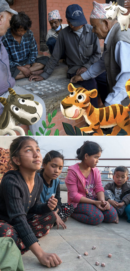 Kdybyste se narodili v nepálské vesnici, nejspíš si hrací pole vyryjete do země a jako hrací figurky najdete kamínky. Jednou jsme to s dětmi zkusily na hřišti v Praze, ale… jak to jen říct… nesetkali jsme se zrovna s pochopením. Skončili jsme špinaví a zaprášení. Ostatní na nás koukali buď pobaveně, nebo jako by přemýšleli, zda zavolat sociálku. ;)